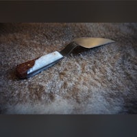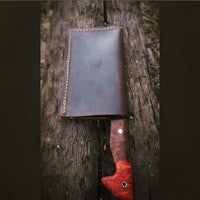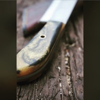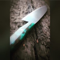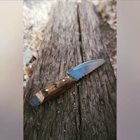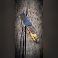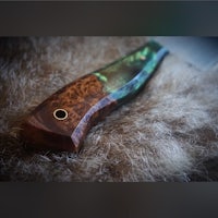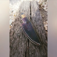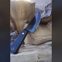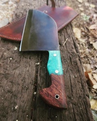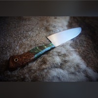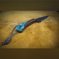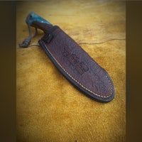 This is 3/32” 1084. It had been heat treated and tempered. It’s wearing maple and turquoise resin scales. “Made to Order - Built to Last”