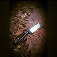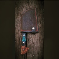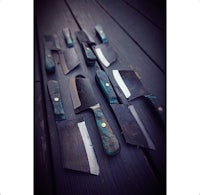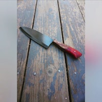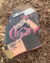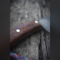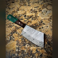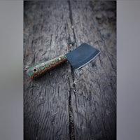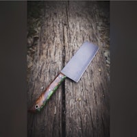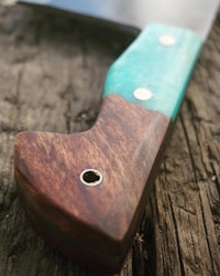 This cleaver was made for the owner of Gnarly Davidsons skateboard company. The handles are made from the remnants of the very first skateboard his company made.