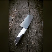 This was created for a customer who was having issues with his old cleavers chipping when making contact with bone. I made this 1/4” thick 1095 high carbon monster for him and he’s had nothing but nice things to say about it.