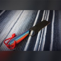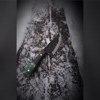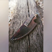 I made this for a guy who does the lighting on movie sets. It is 1/8” 1084 high carbon steel and is wearing resin and black resin handles. It has a thicker tip for prying and is kept in a custom sheath made by me in the USA
