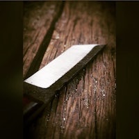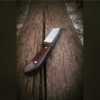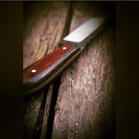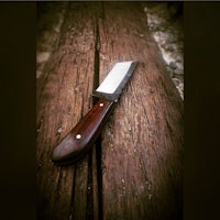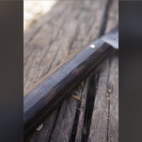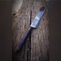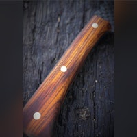 This tanto was made from an antique saw blade that was annealed and re-hardened. It is wearing cocobolo handles