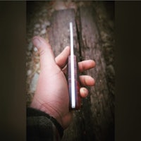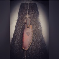 A customer wanted something completely original so I used a variation of my bushcraft blade shape and my “less than lethal” pry bar pommel. I added a tube for a paracord and included a lanyard.