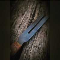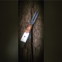 This was a fun project. It’s a bbq fork I did for a friend who has a matching Santoku. This was partially forged and finished with my grinder. It is 1095 high carbon steel and the tips of the forks have been hardened