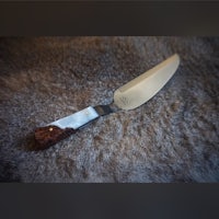 This was a custom creation I came up with for a customer who wanted something nobody else had. It is 1/8” 1095 high carbon steel and has been heat treated and tempered. It is wearing beautiful ruby and maple scales.