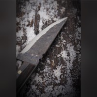 1/8” 1095 high carbon steel that has been heat treated and tempered. This item is wearing maple and resin handles with brass hardware.
