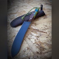 1/4” 1095 high carbon steel with maple and resin handles and custom sheath